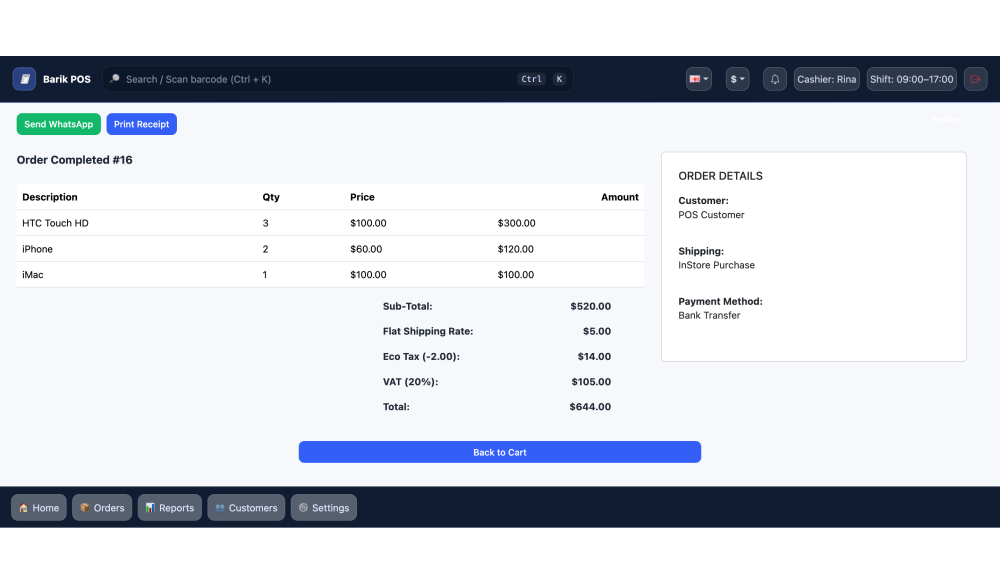 Bariklabs BPOS - Advanced Point Of Sales (POS) for OpenCart
