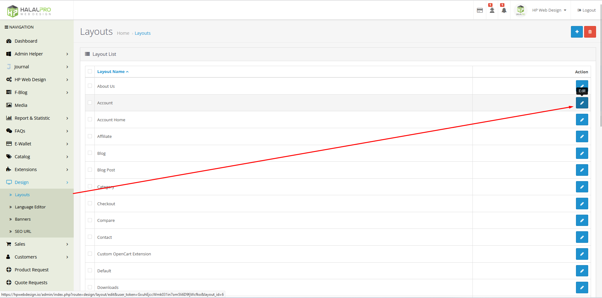 • Add that menu to account layout by navigating to Design :: Layout. Edit Account layout. And add "HP Advanced Affiliate" module on column right/left as you prefer. Save.