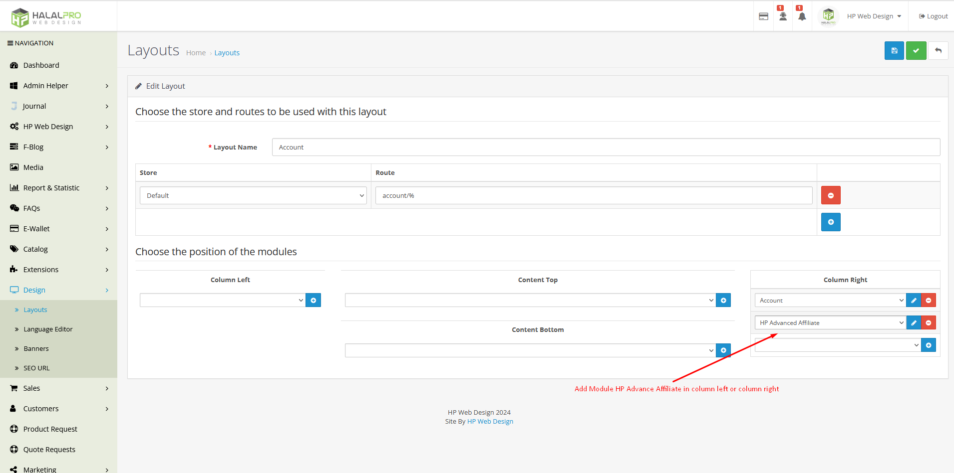 Add Module HP Advance Affiliate in column right or column left