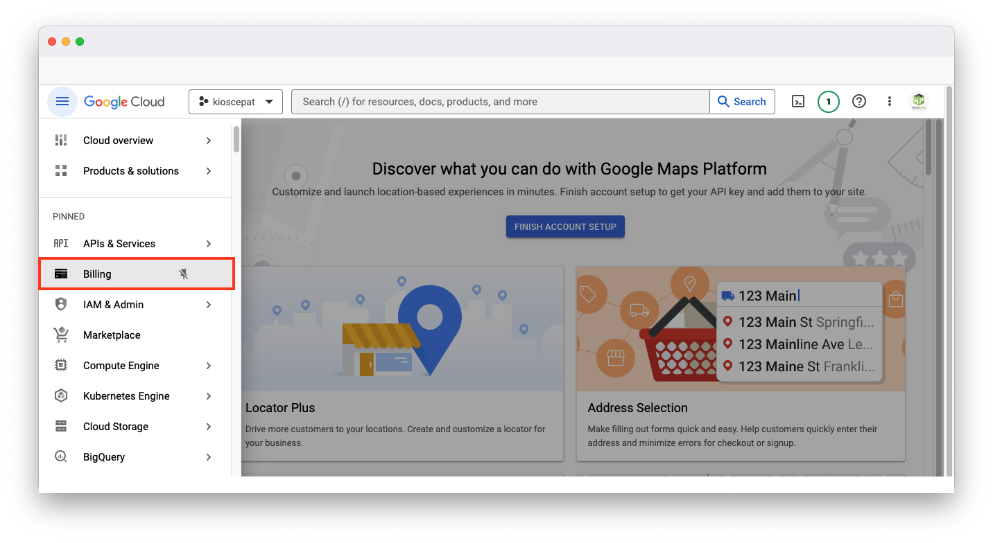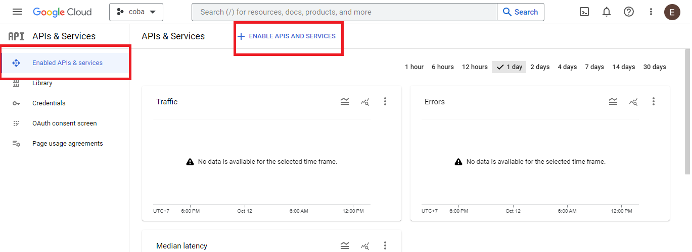 5. Click ENABLE APIS AND SERVICES on menu Enables APIs & Services