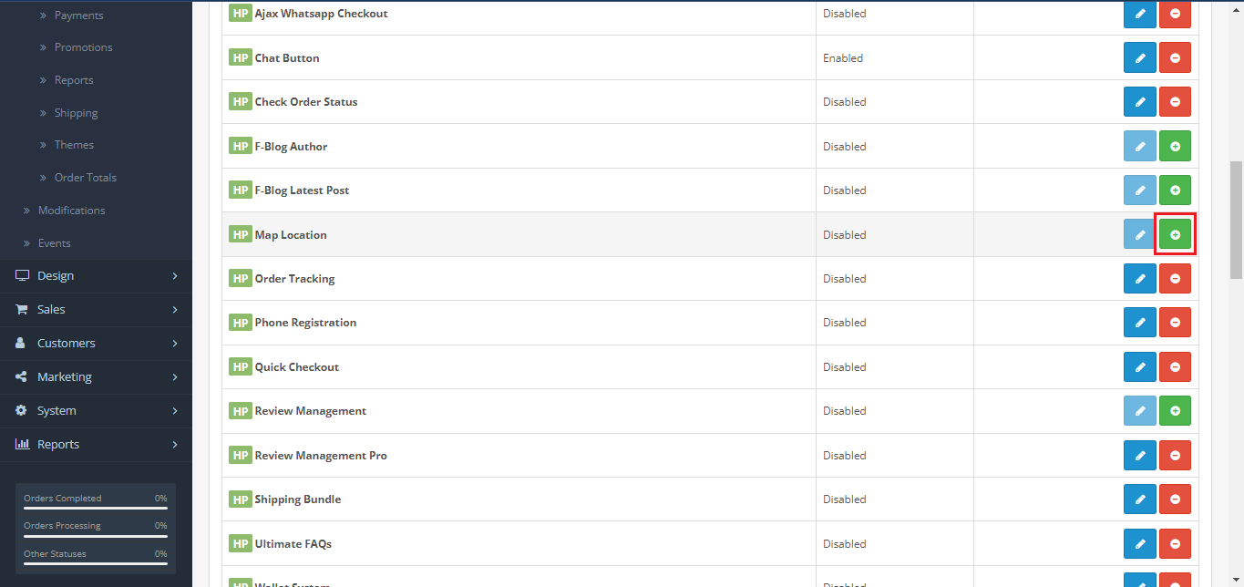 5. Install by: Access to the module page. Click install and edit on HP Map Location