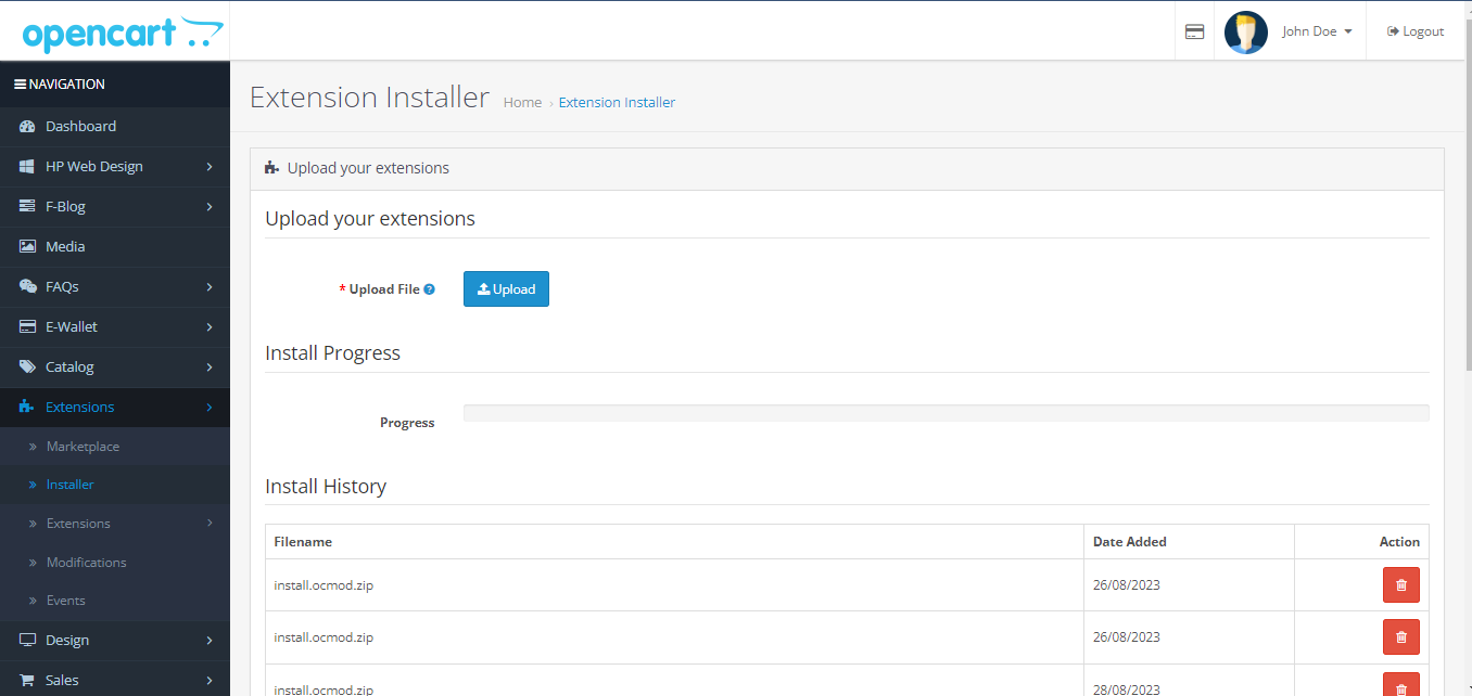 3. Upload file: upload.ocmod.zip on the extracted HP Map Location.