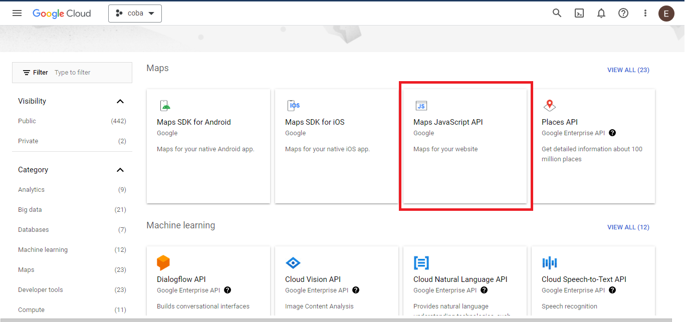 6. Select Maps Javascript API and then click Enable. After that click Manage.
