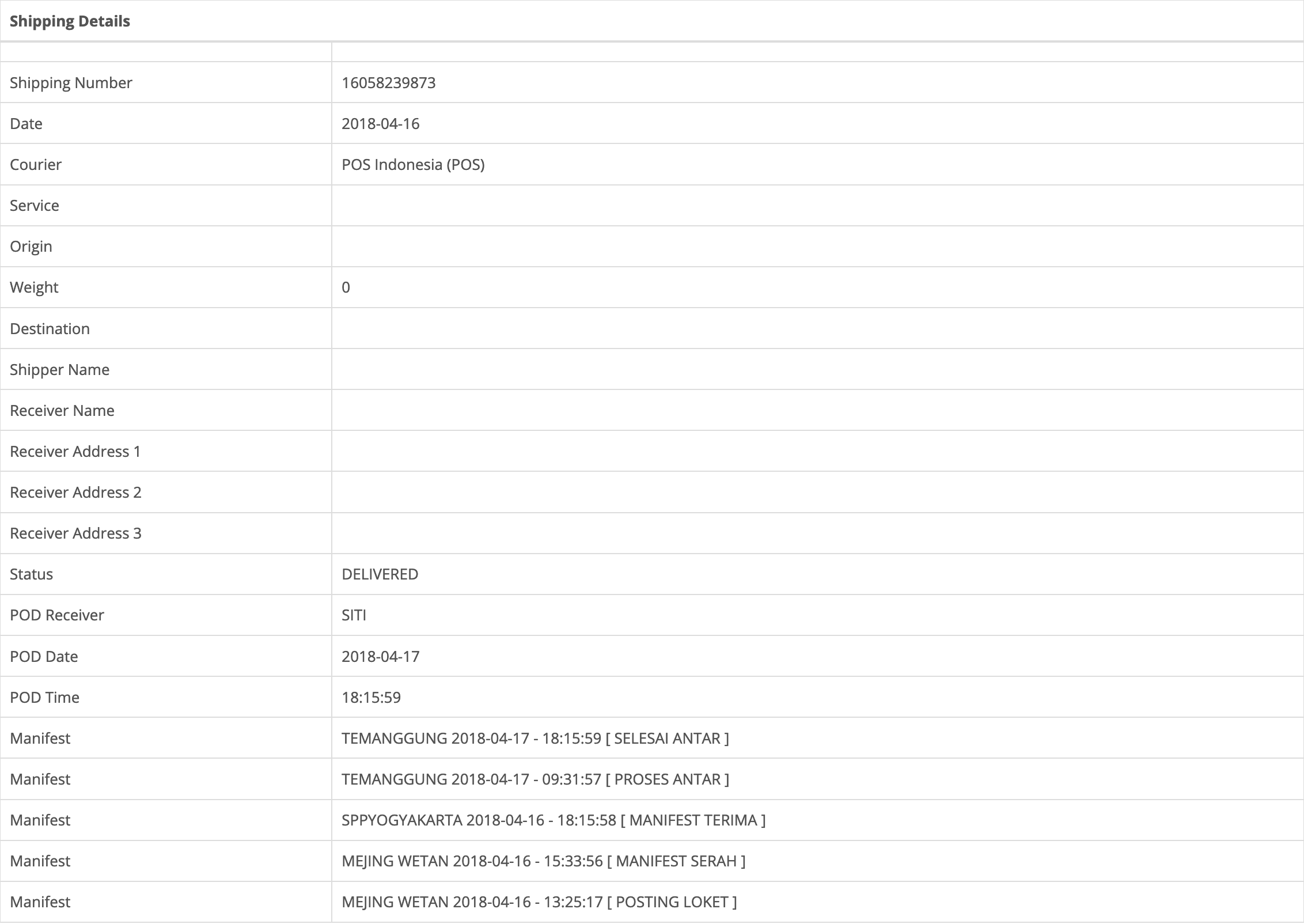- Expedition : Filled with the courier used, for example: POS, JNE, etc.