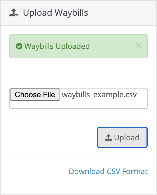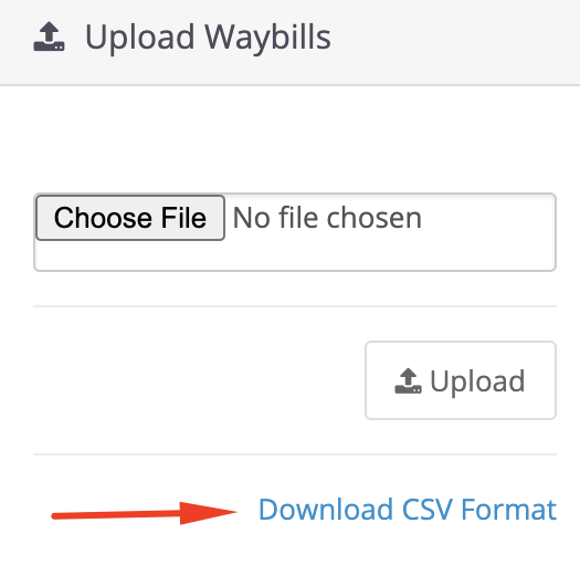 - At the bottom, there is Upload Waybills, then click Download CSV Format.