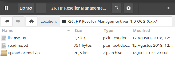 1. Extract the HP Reseller Management module file to get the following file with the extension OCMOD.