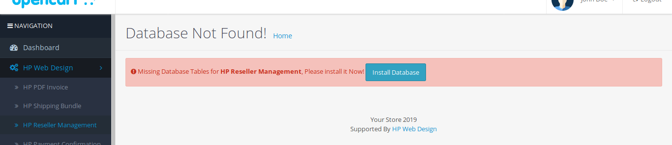 6. After the validation process is successful, the module page will appear as follows. Press the Install Database button to add the table to your system database and complete the installation process.