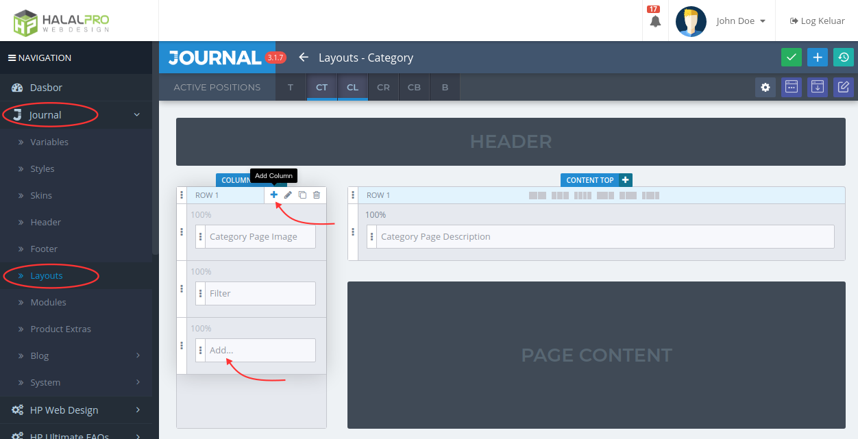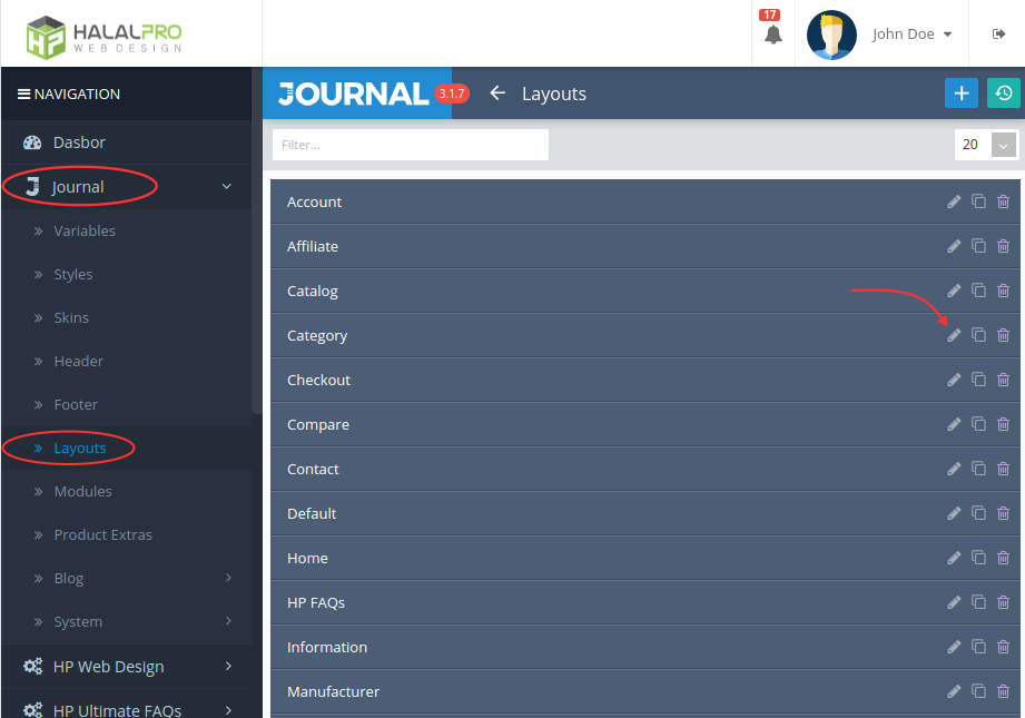 - Navigate to Journal → Layouts then select the layout to which you want to add the FAQ column.