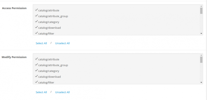 - Navigate to the System page → Users → User Groups → click the Edit button for Administrators. Click Select All on Access Permission and Modify Permission then save.
