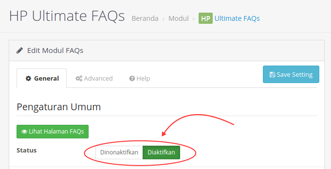 Pengaturan/Setting Kategori FAQ dan item FAQ.