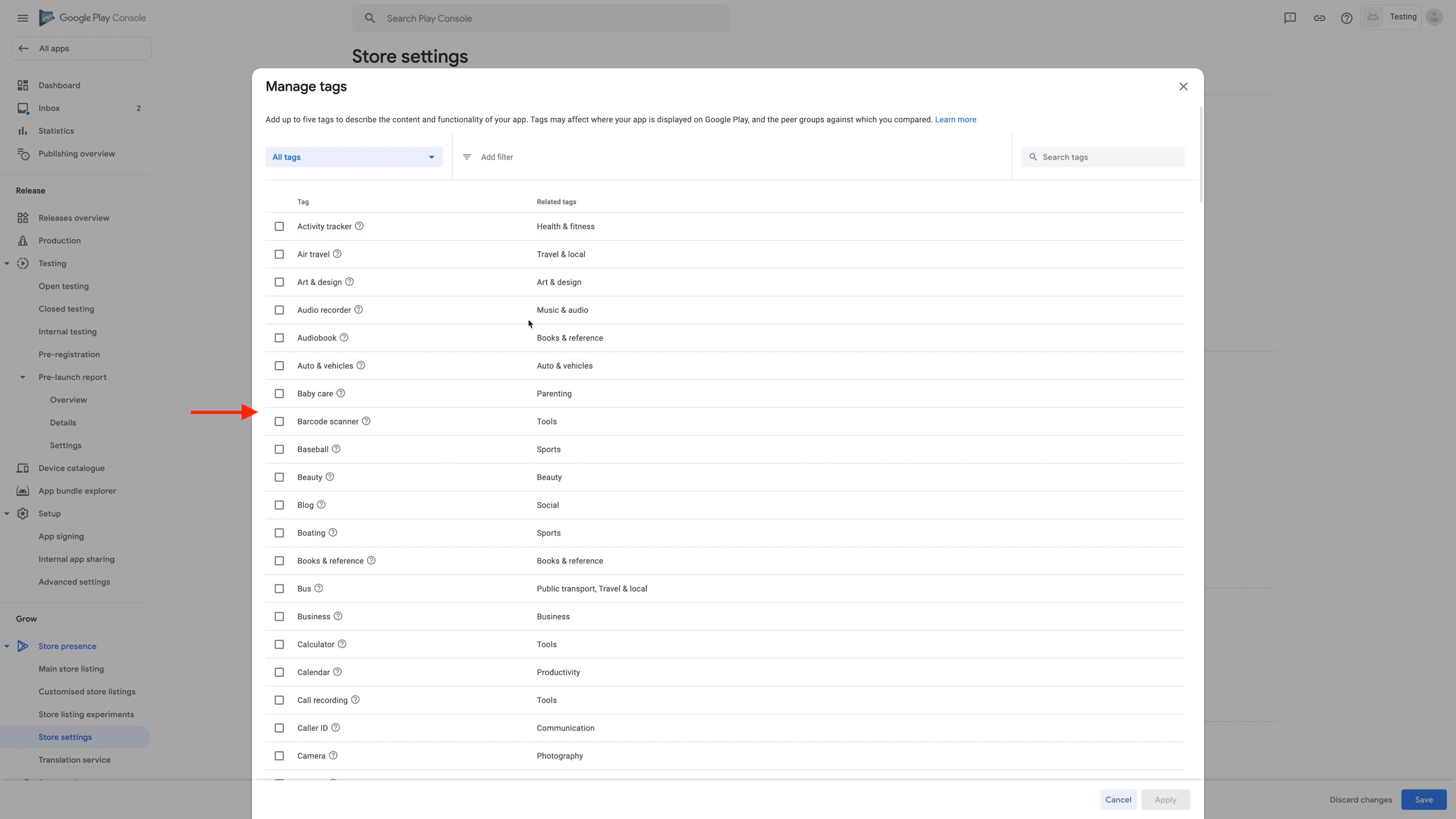 33 Select Application Type, application category from the dropdown menu and Click Manage Tags and a new pop-up for adding tags will open