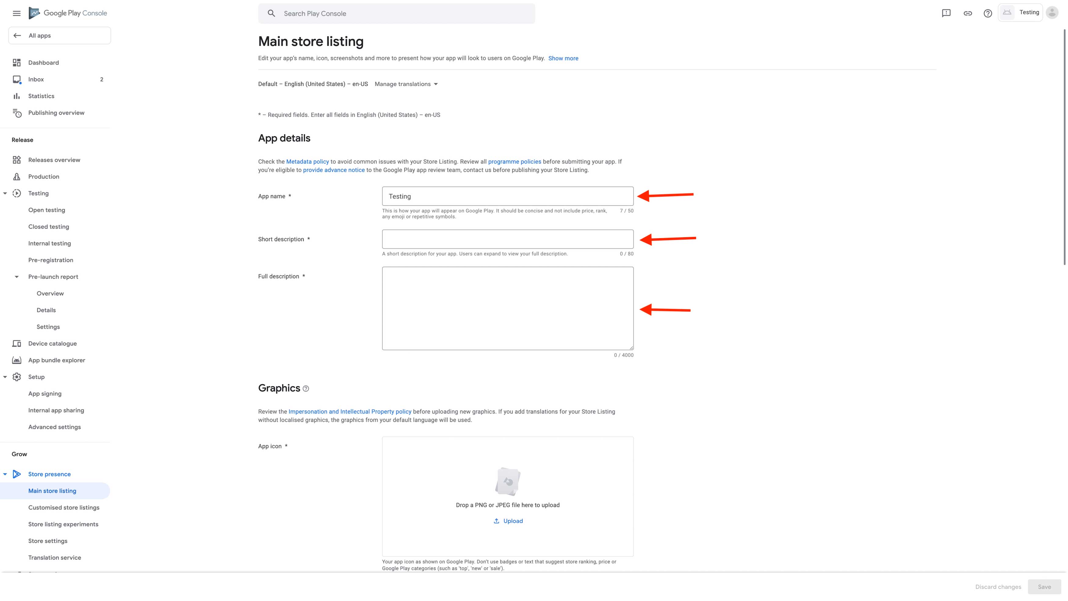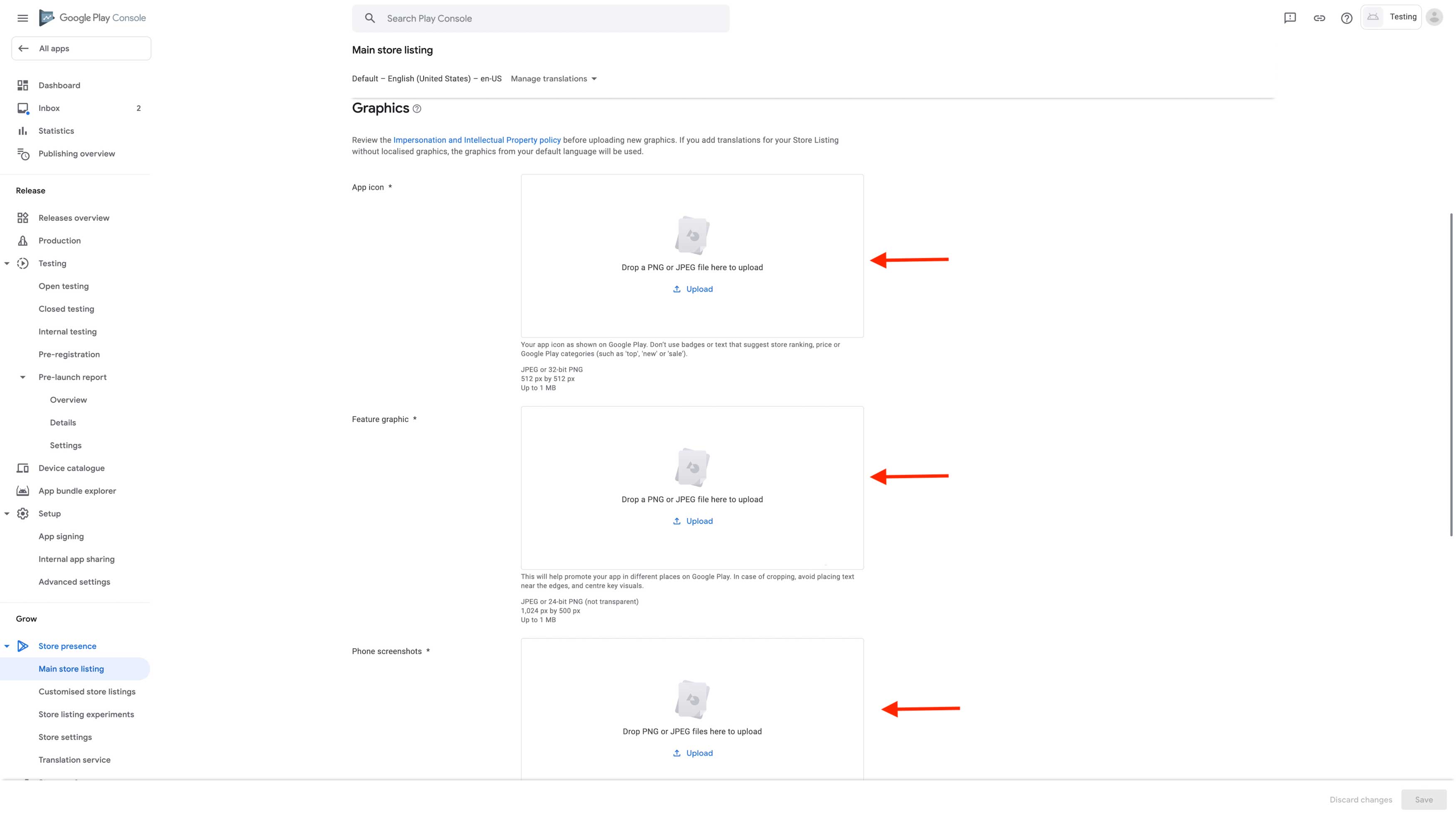 40 Upload Application Icons, Feature Graphics and screenshots in the Application Graphics section. Add YouTube video URL to your store listing Step