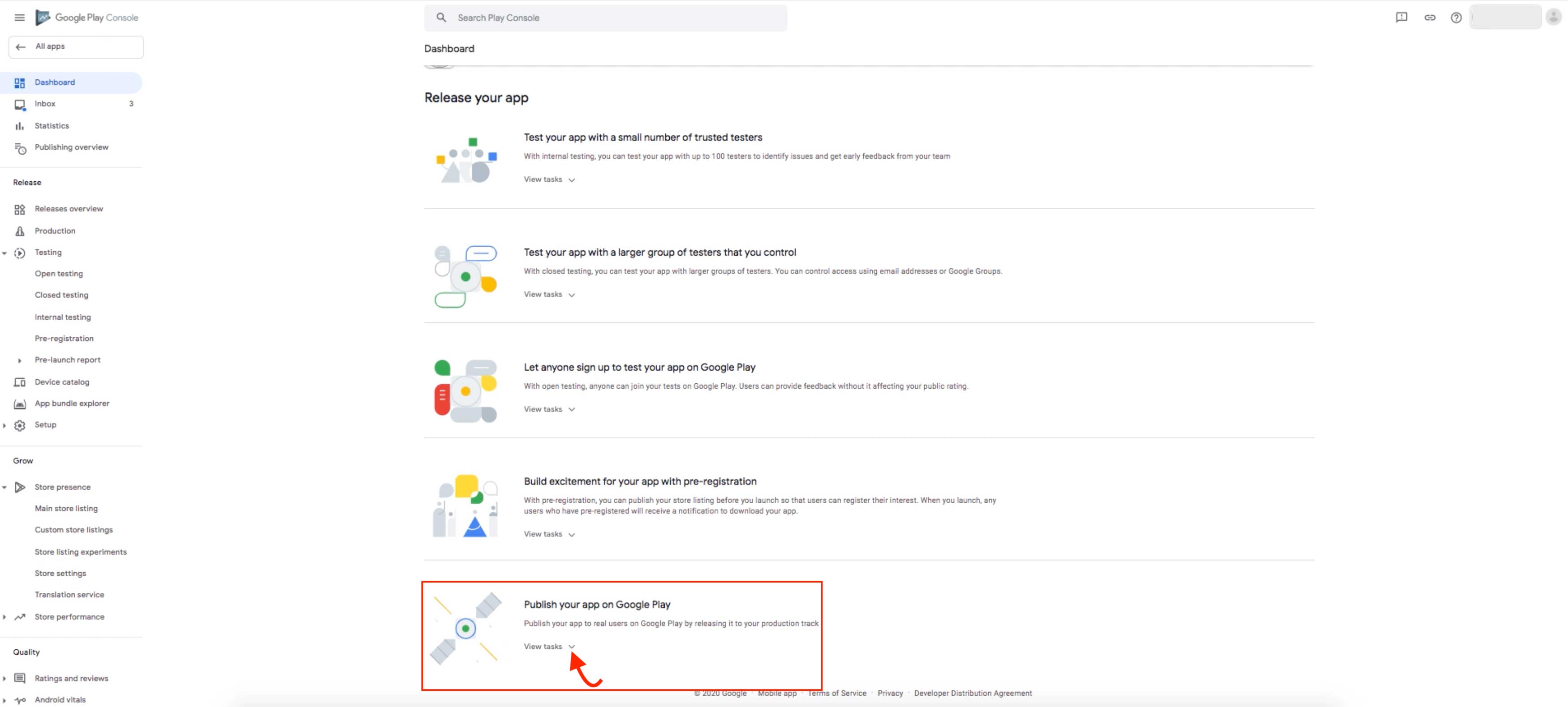42 Scroll down to the Publish Your App section on Google Play and click on the dropdown menu