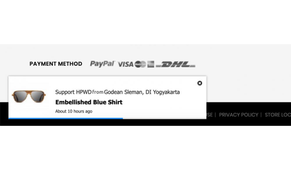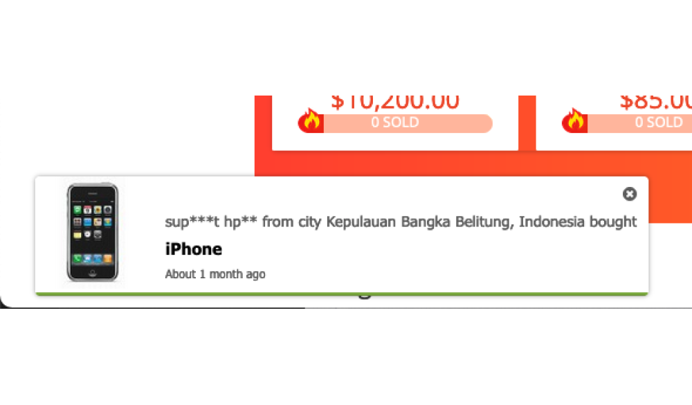 - In addition, the Sales Notification Popup also displays the city and province of origin of the customer.