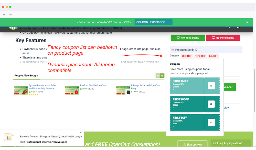 • Automatically improving built-in coupon feature on your OpenCart online store.