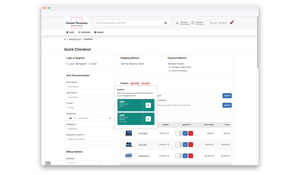 If the customer checkout  order, we also provide a coupon option when selecting a payment method