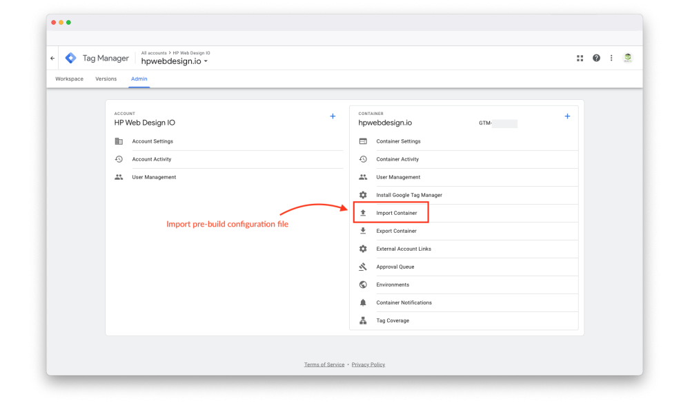 - Insert Google tag manager container ID