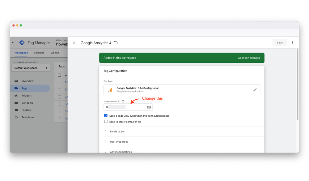 - Change Google analytic 4 Measurement ID.