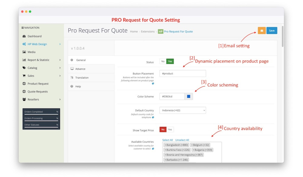 1. Pro Request For Quote Main Settings