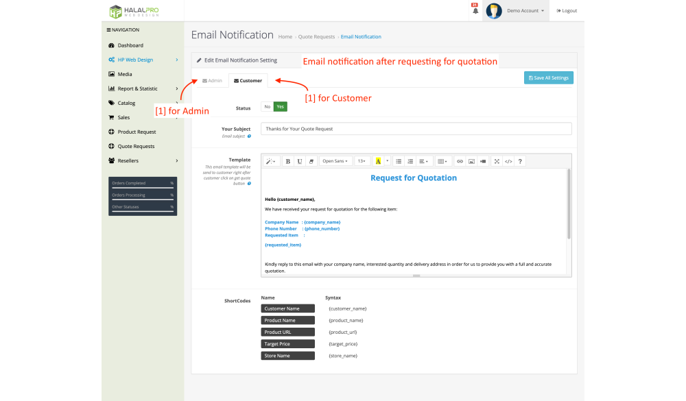 4. Email Notification Setting for Quotation Request