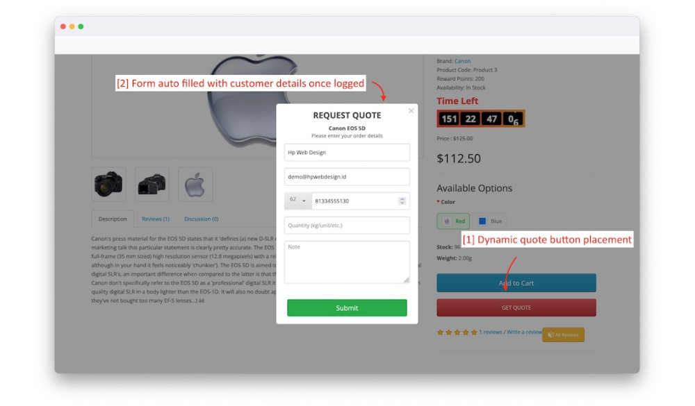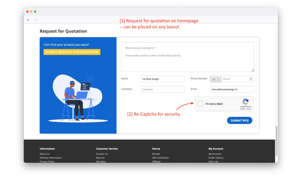 - Conveniently allowing your customer to request for quote.
