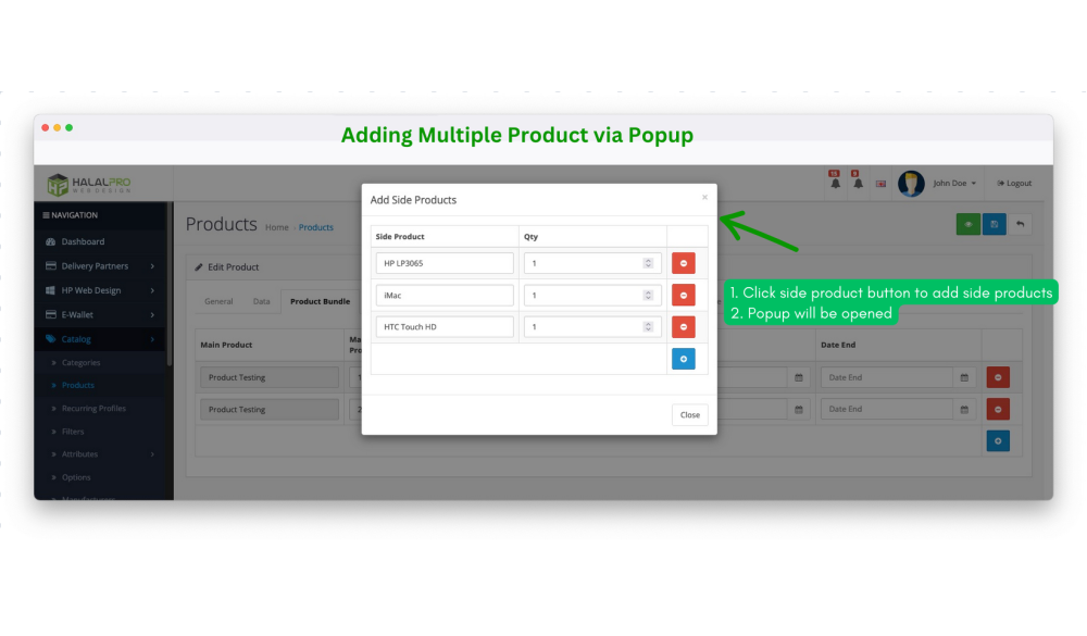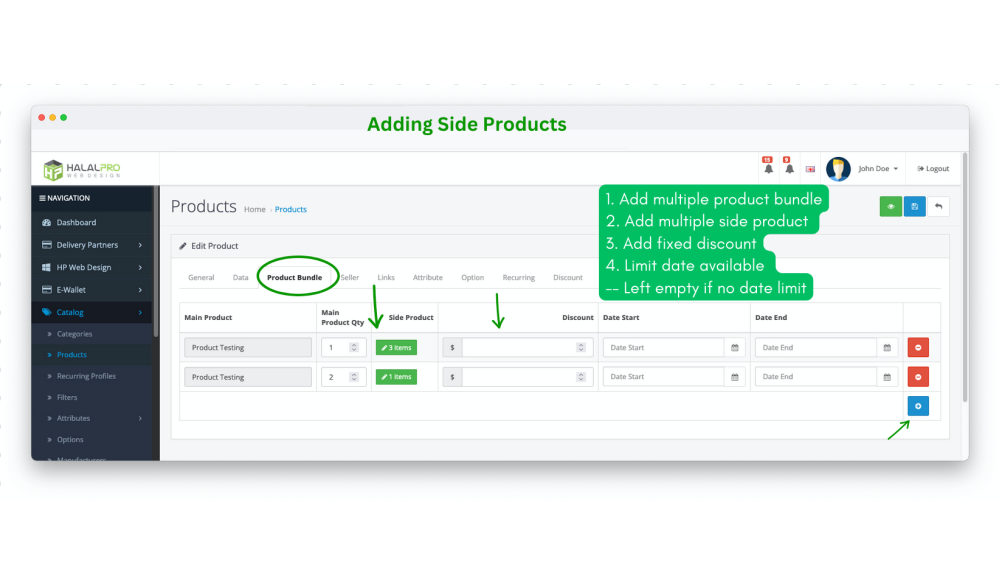→ Add multiple product bundle (main + side products)
