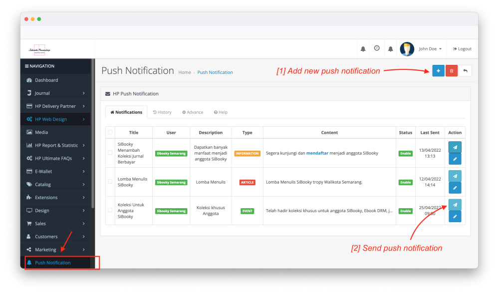★ Push notification management added on admin backend.