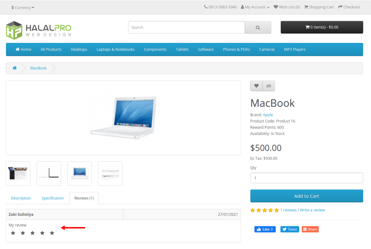 All reviews that have been entered must go through admin approval first, and if they have been allowed, the submitted reviews will appear on their respective product pages, as you can see in the image below.