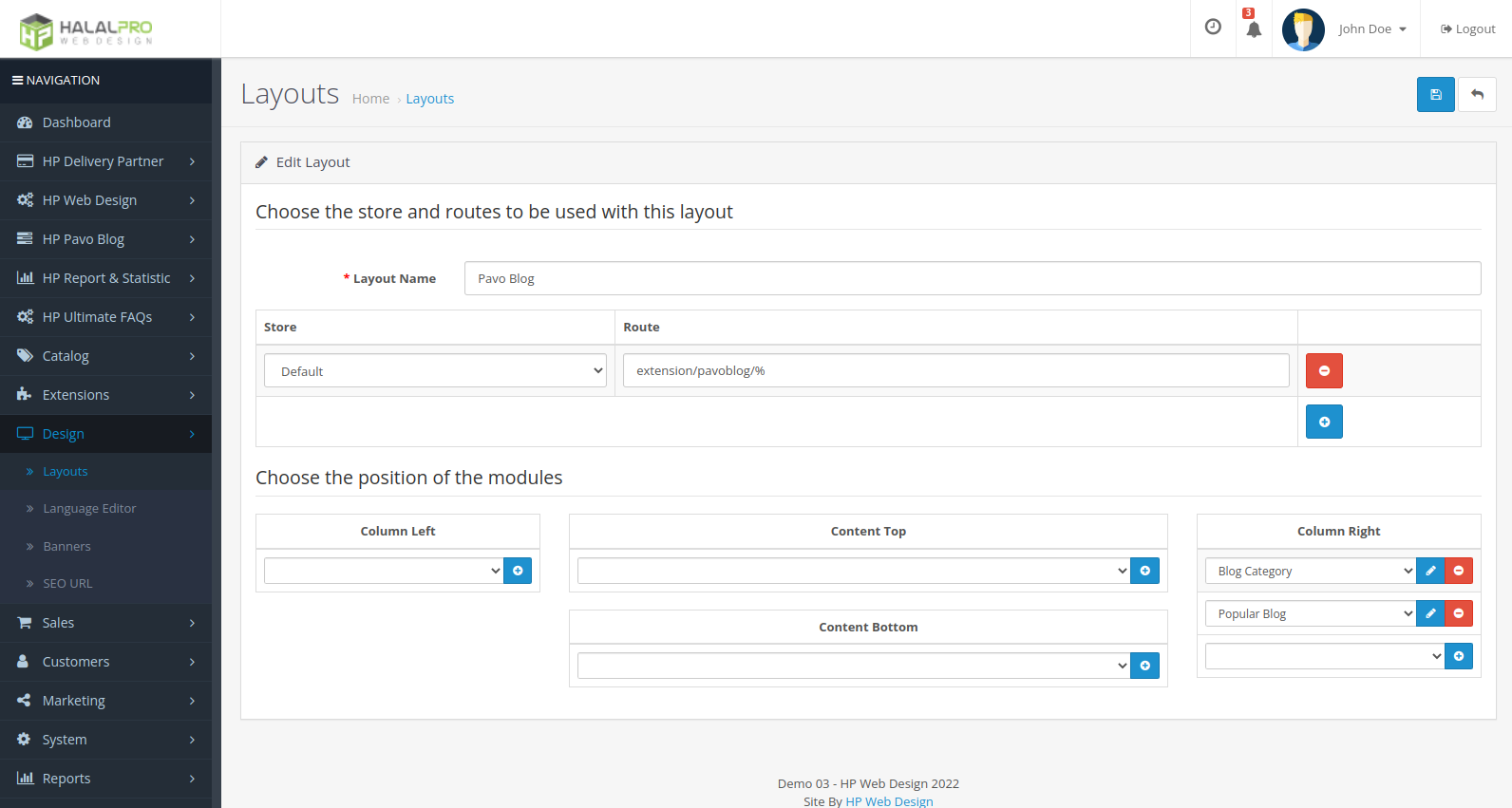 - On the right, there are category blogs and popular blogs, these are the support modules that have been added to the layout design