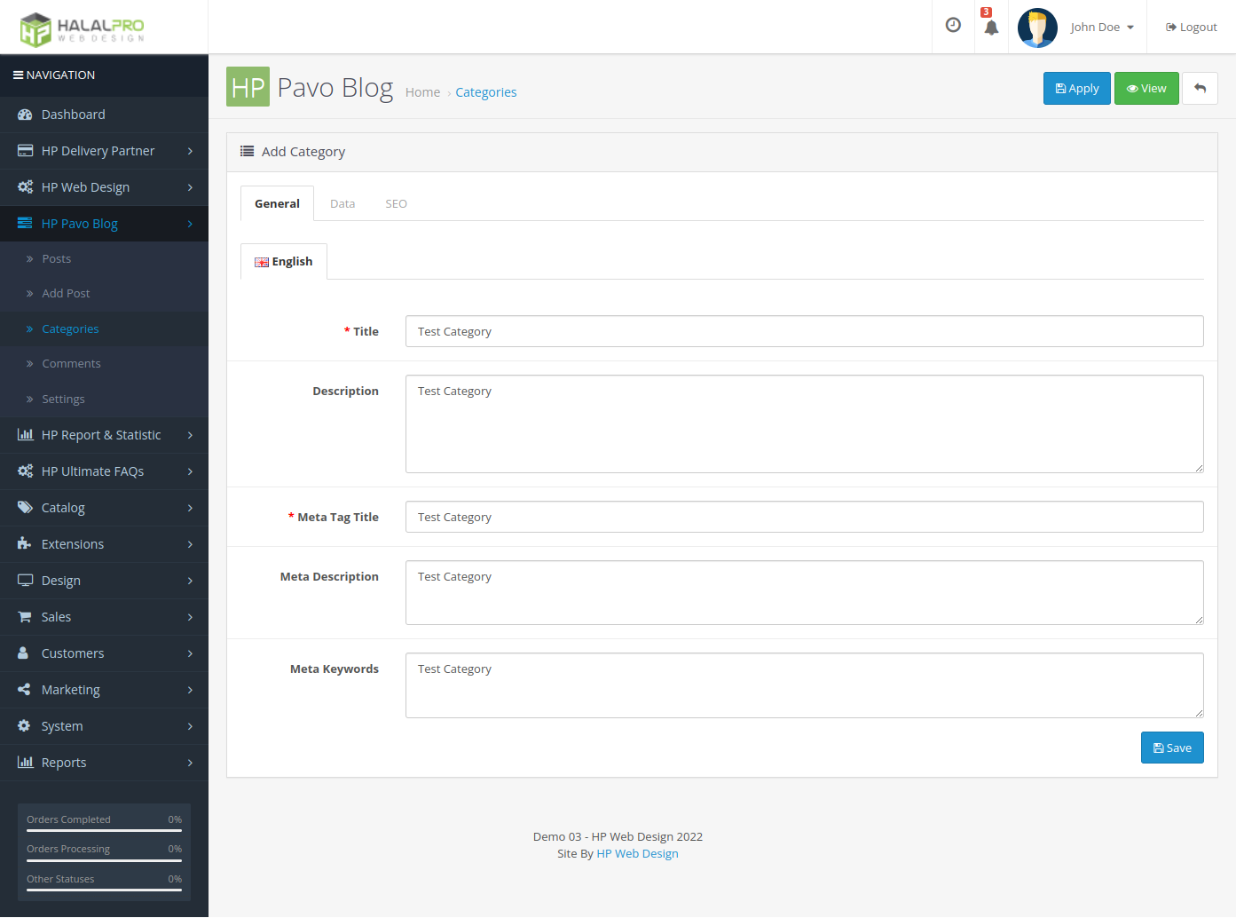 - On the category form you can fill in the name and description of the category, images, and more. For more details, please try the web demo