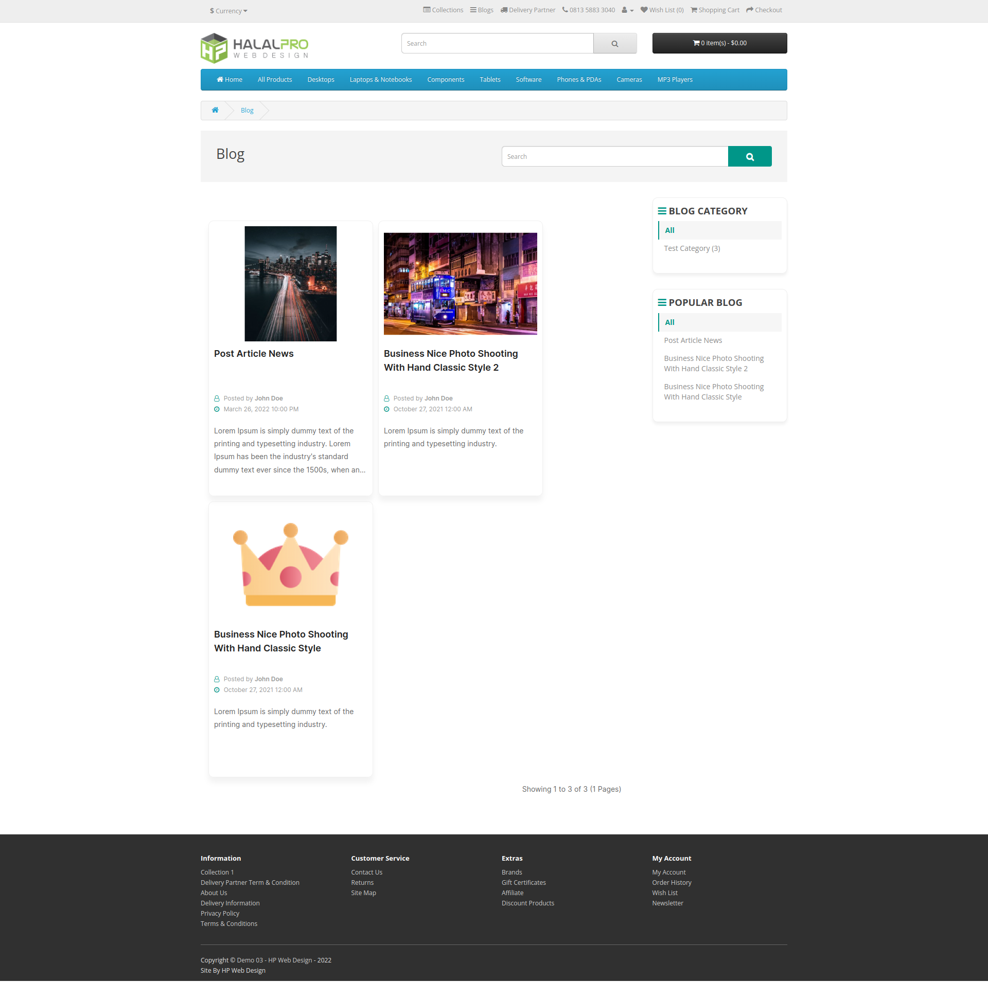 - The following is an example of an article list page display, customers can access it on the blog menu on the top menu.