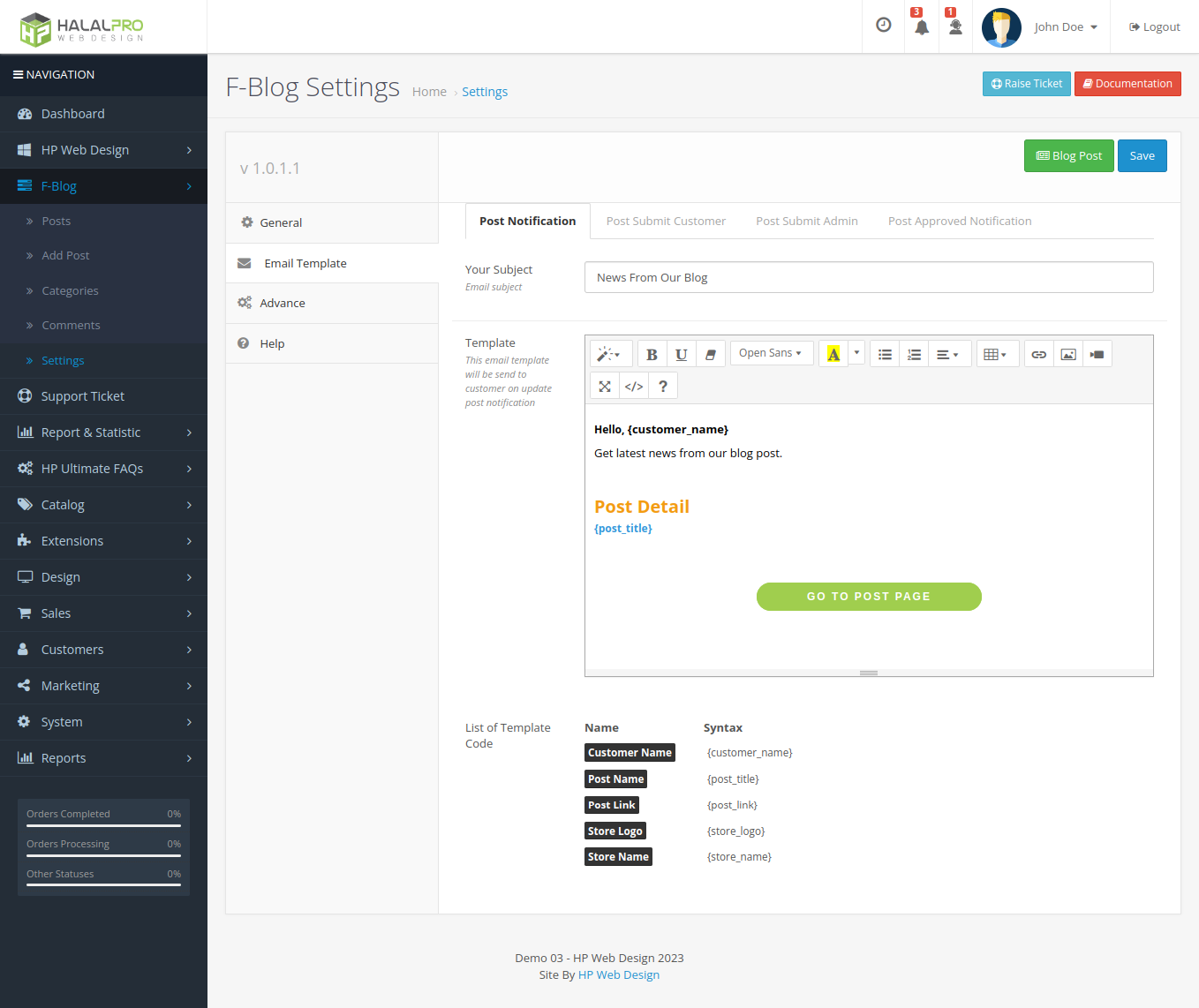 - There are email notifications to admins and customers when customers make posts, you can edit the contents of the email in the email template settings