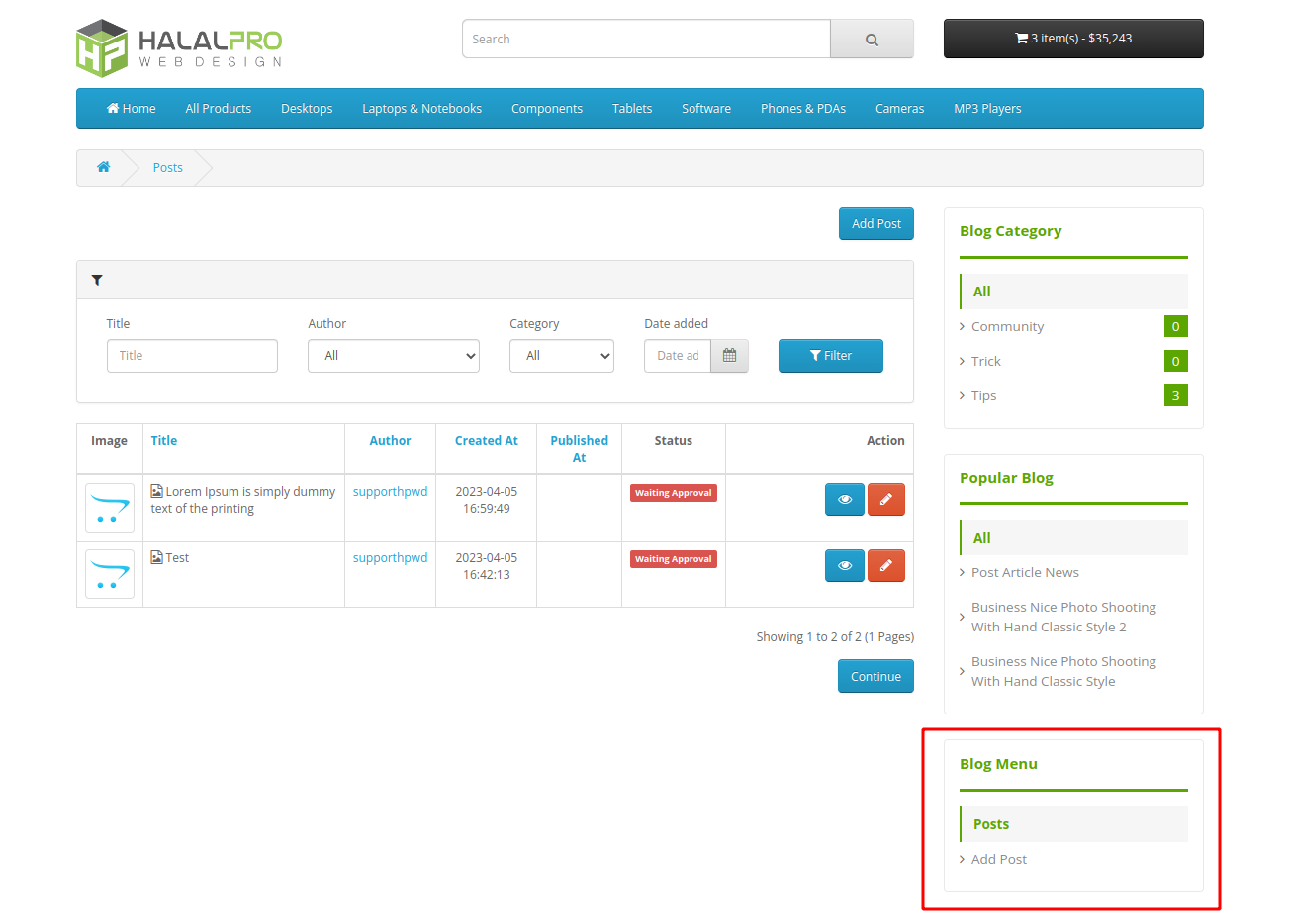 ★ Manage Blog post