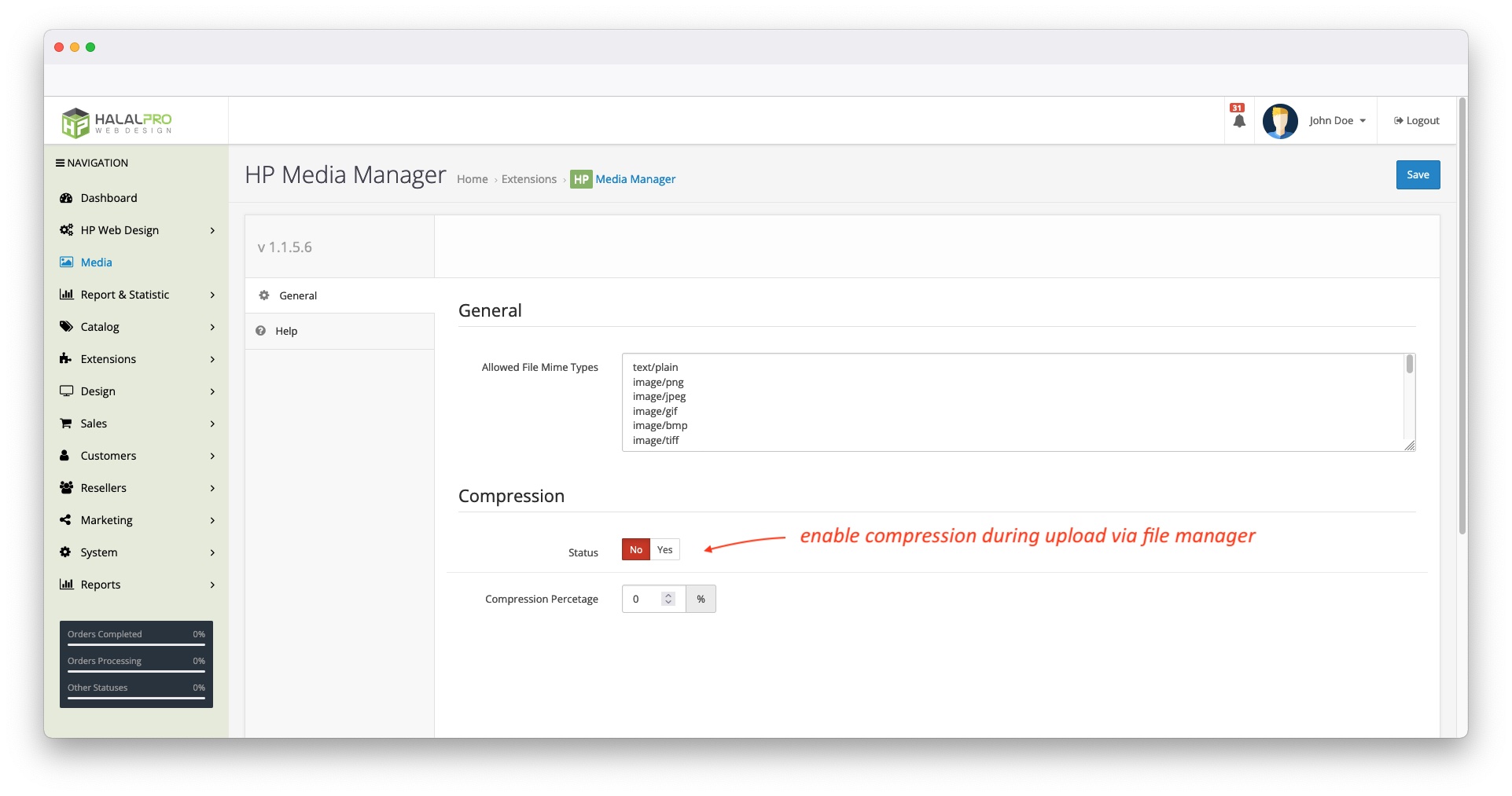 - Setting Image compression and allowed file mime types