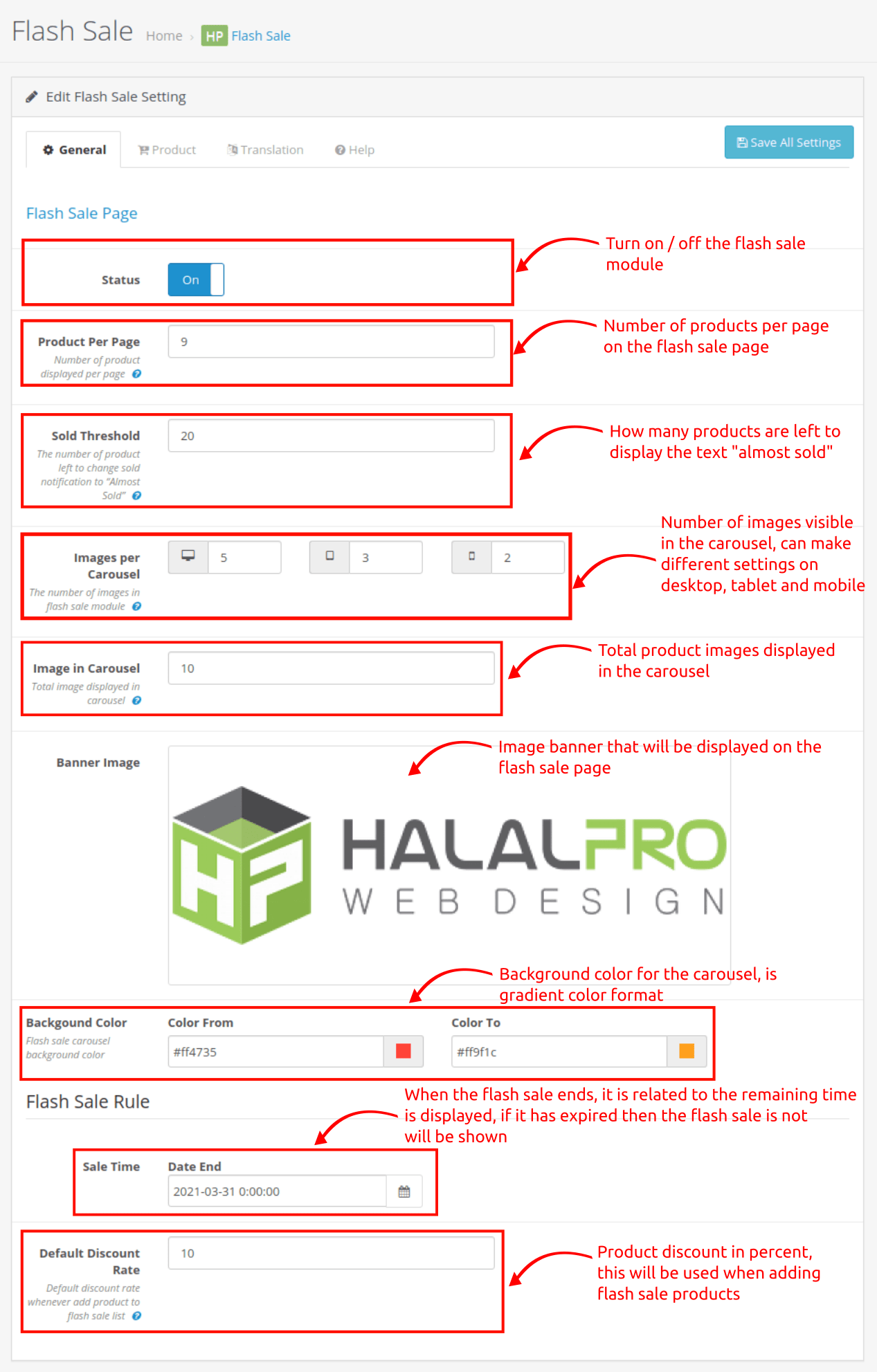 The process of adding this is related to setting the flash sale rules on the general tab, namely regarding the amount of the discount and the end date. So that each product that will be added to the original price will be deducted according to the amount of discount that has been set on the general tab, as well as what happens on the end date.