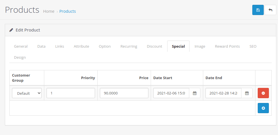 If you want the discount and end date settings to be different for each product, please click the edit button on one of the products in the product list, it will be redirected to the product edit page, please open the special tab to start changing, then after that don't forget to click save. in the top corner.