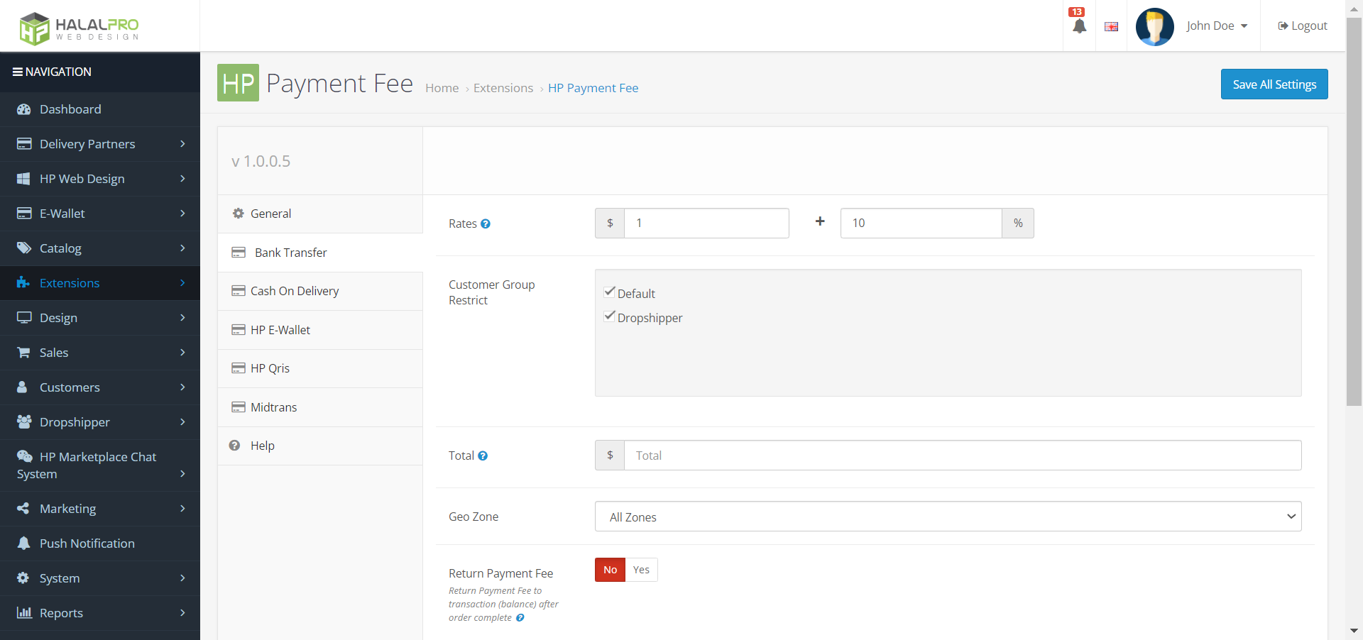 3. Setting Payment Fee or Charge for Payment Gateway Opencart
