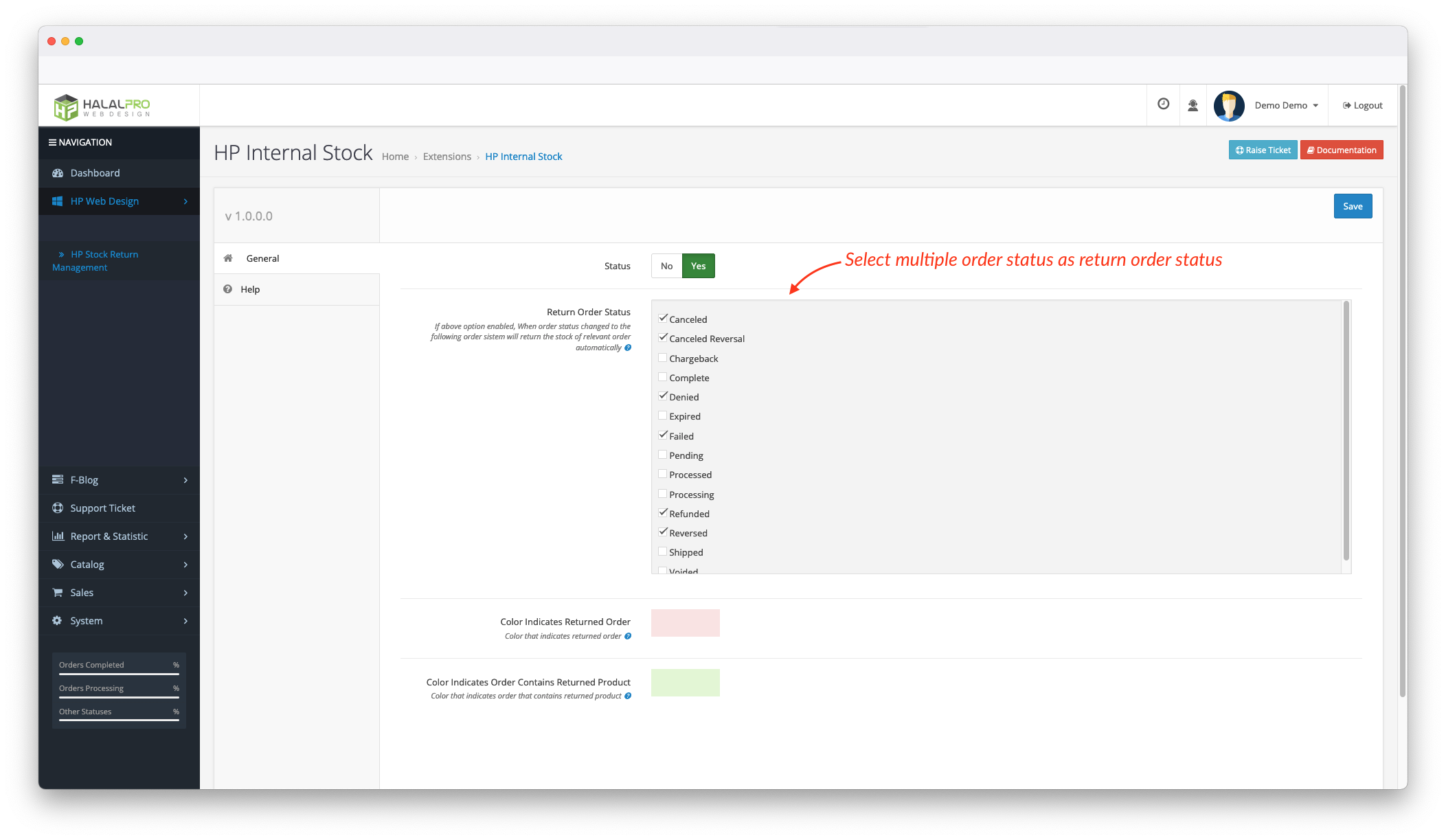 1. Select Multiple Order Status as Return Status