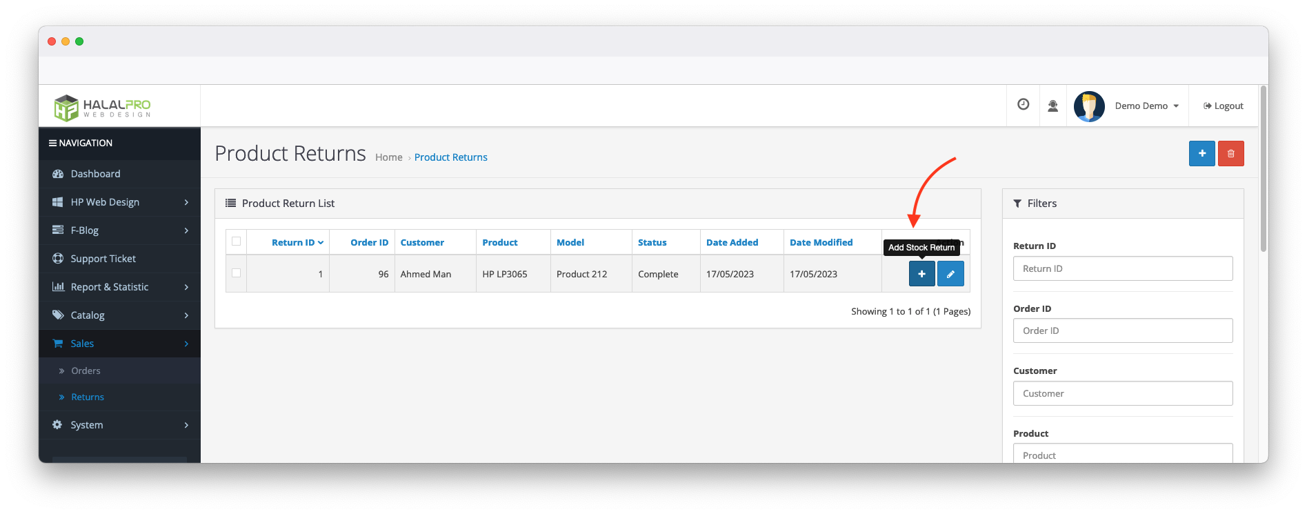 3. Those returned product will be on special pages that you can manage easily. Like delete from product return management page.