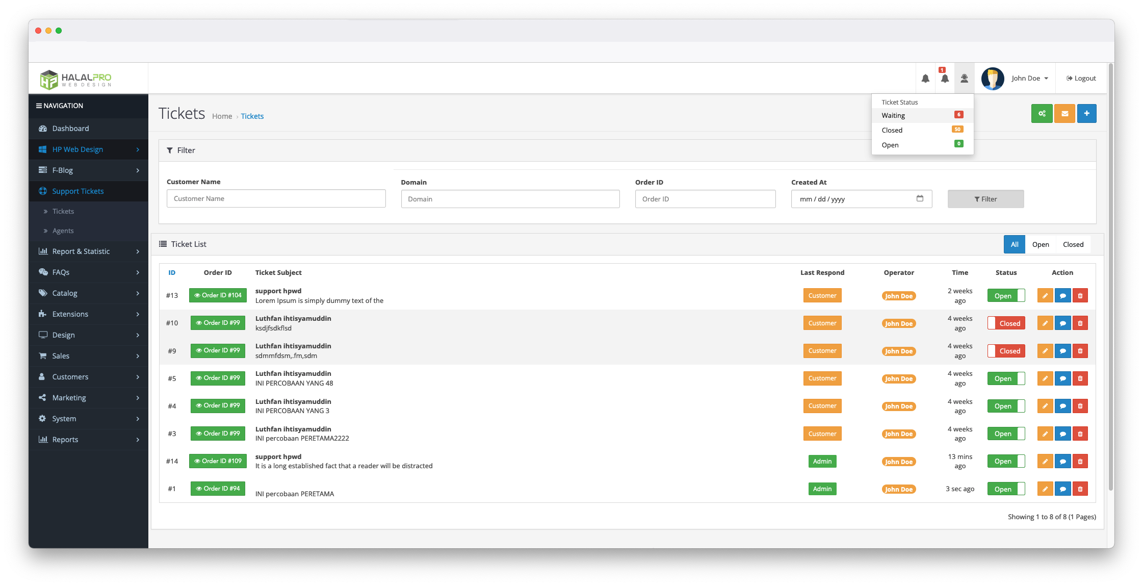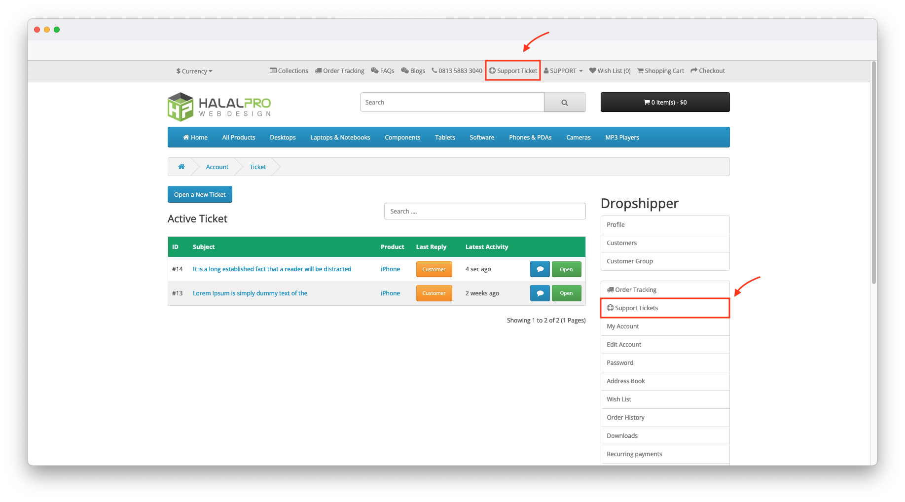 HP Support Ticket Management OpenCart