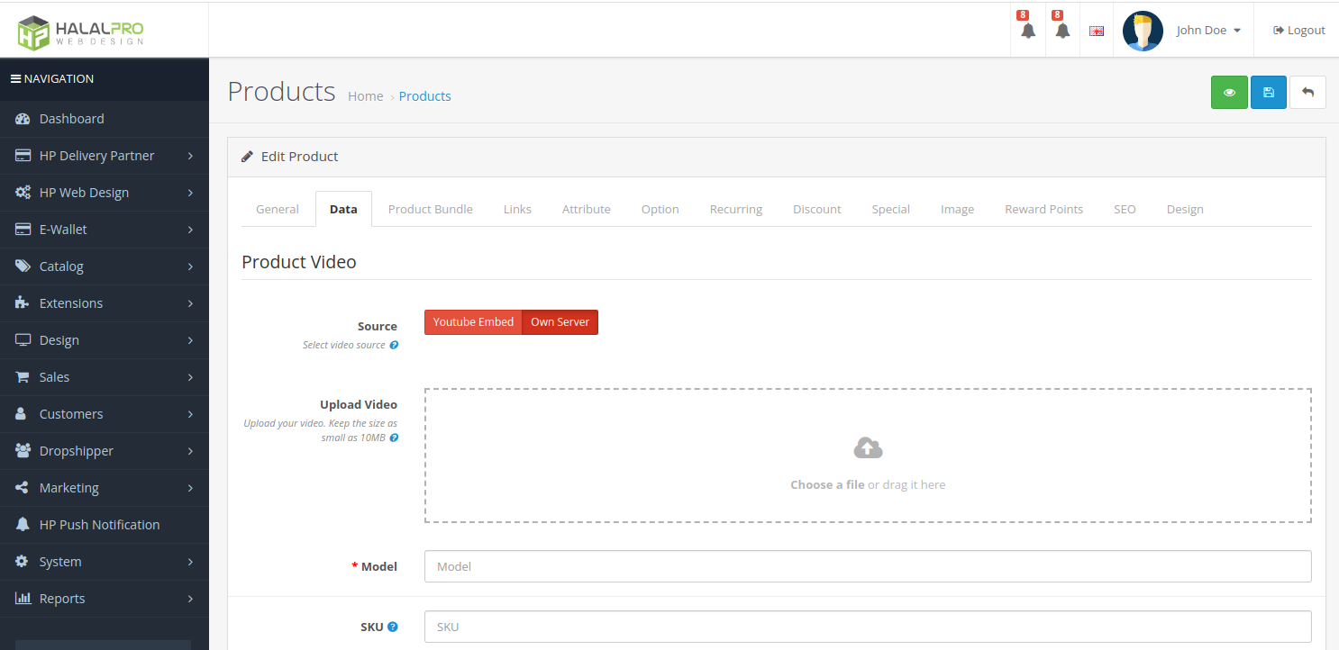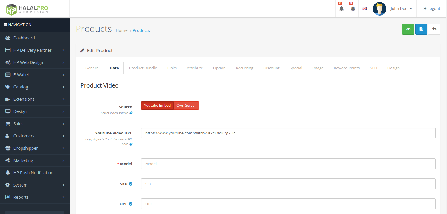 - Allows admin to easily add or remove the product video as well as editing the product details