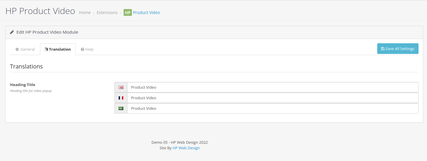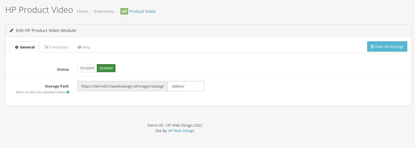 3. OpenCart Product Video Main Settings