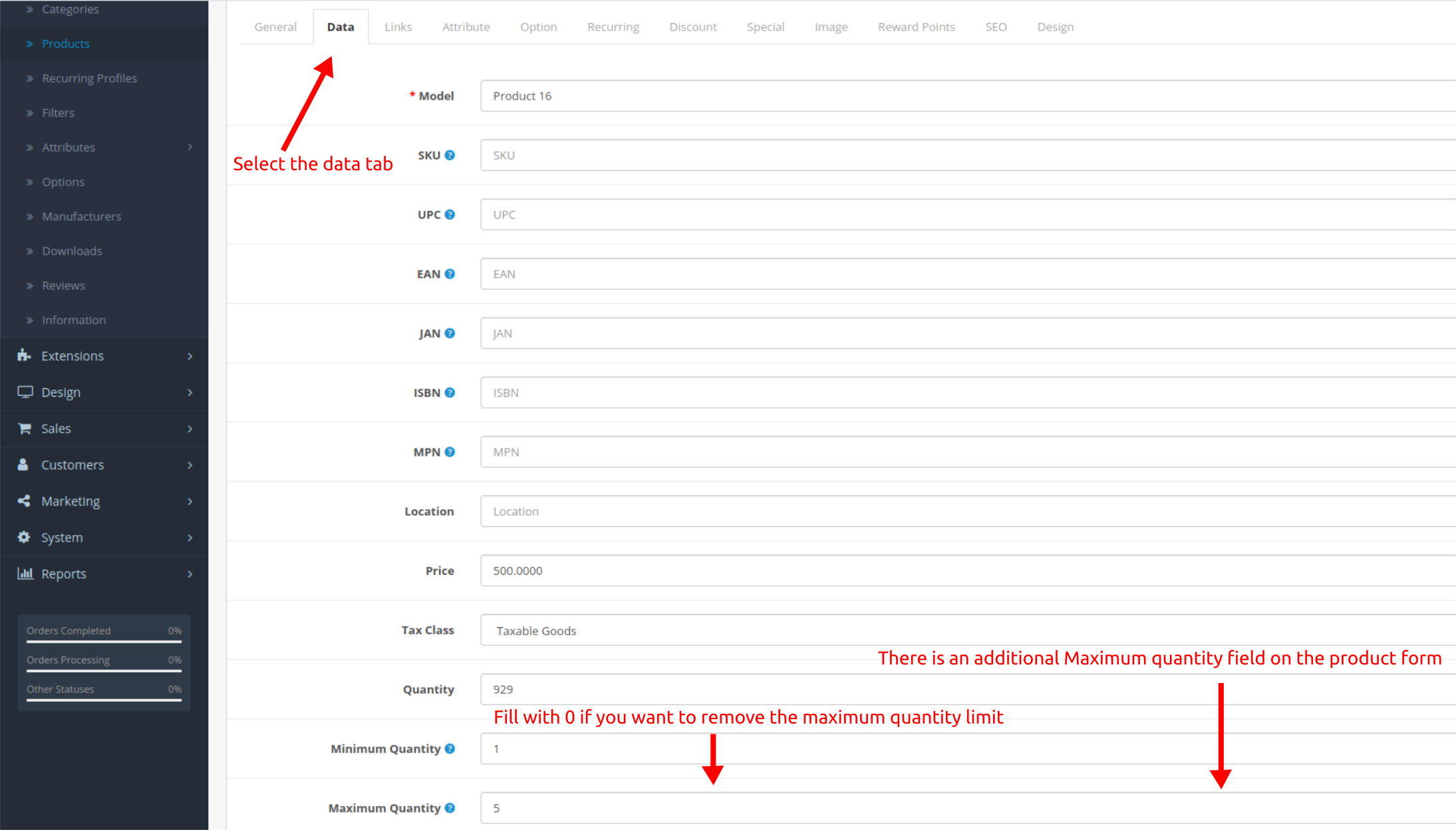 This extension is an OCMOD file which is used to add maximum order features to a product, so that users can only order the product in the quantity specified by the admin for each order.