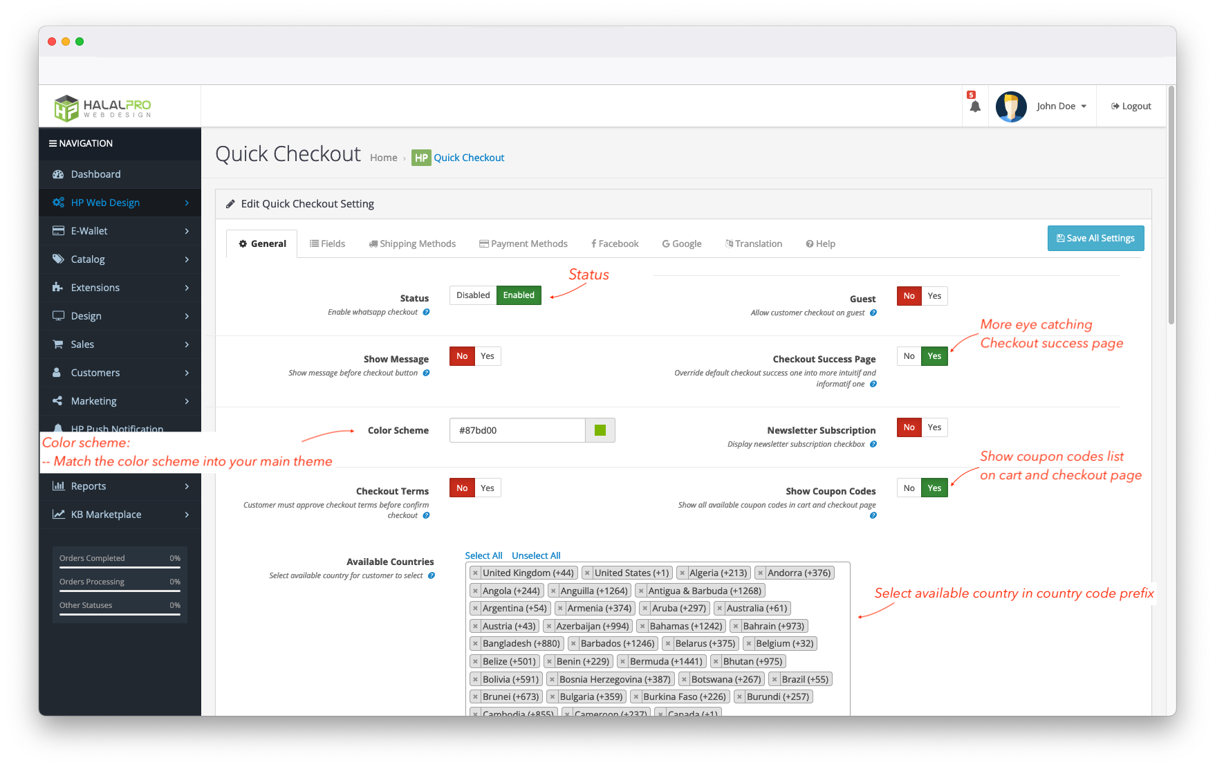 • You can also limit which country codes can checkout (for those of you who make transactions internationally)