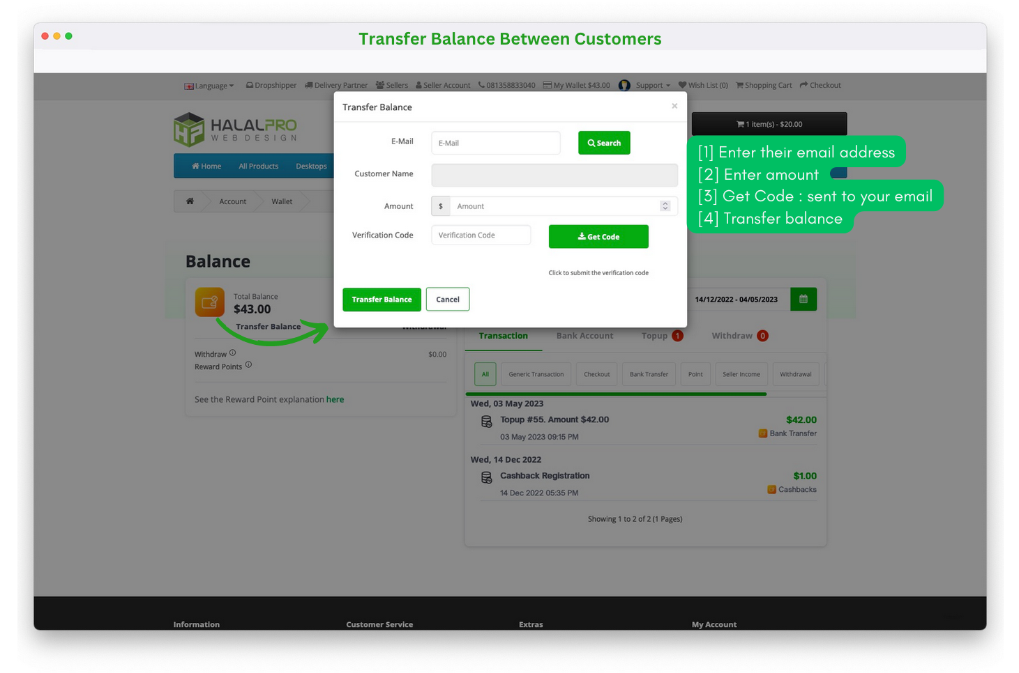 - HP Wallet System is an extension that will act as digital wallet features on your opencart online store.