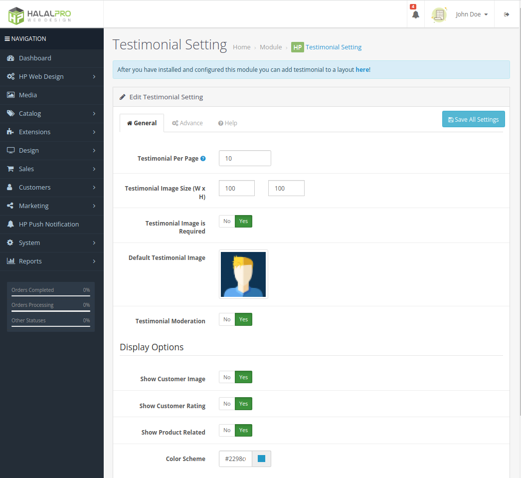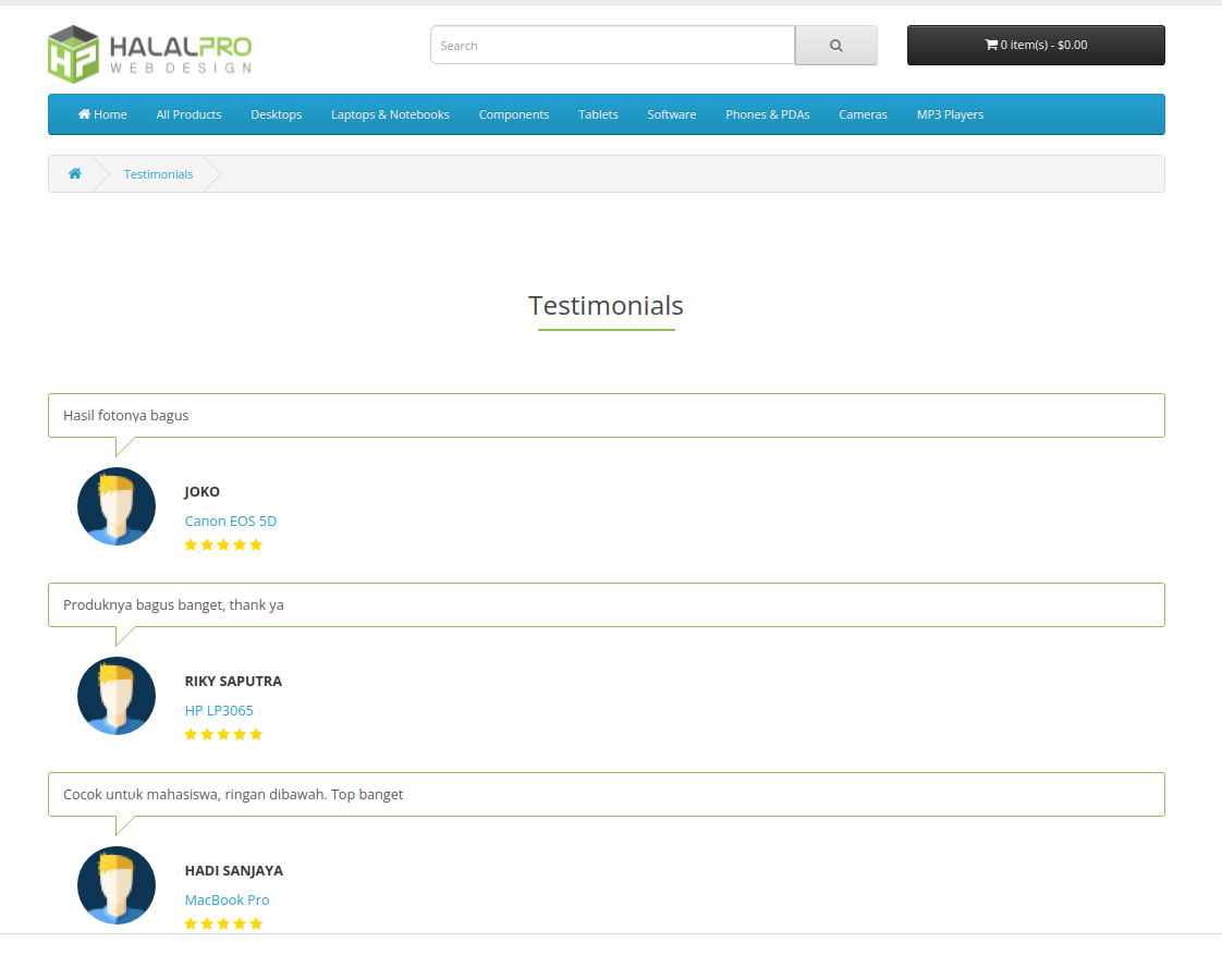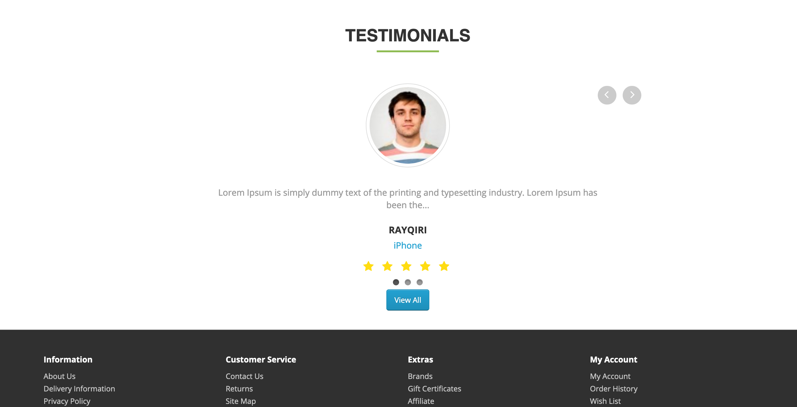 - When customers leave reviews about a product, those reviews are aggregated and presented in a slide show model and testimonial list for your new customers to see.