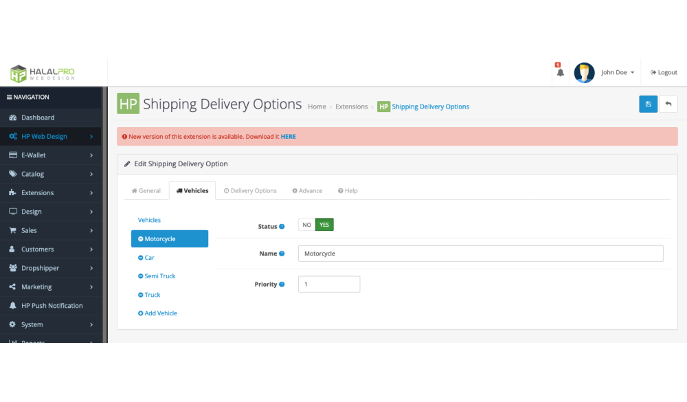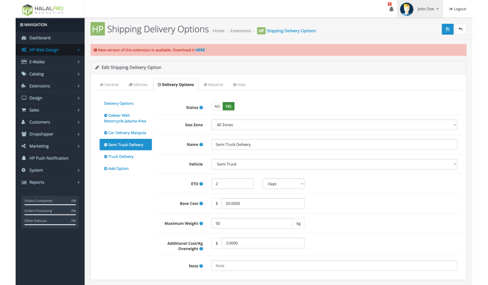 HP Vehicles Delivery Option Shipping Method for OpenCart