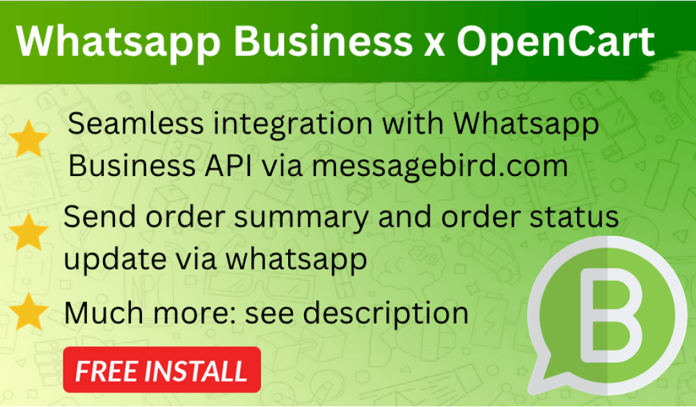 - Safely and seamlessly integrate Whatsapp Business Official API with OpenCart via messagebird.com